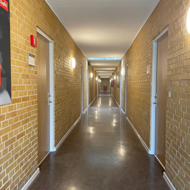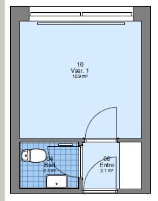 Boligerne er 16 m2 og består af 1 værelse, og er fuldt møbleret. Der er fælleskøkken. Køkkenet indeholder det fornødne til en dagligdag. Under inventarlisten kan du se hvad der forefindes i boligen ved din indflytning.